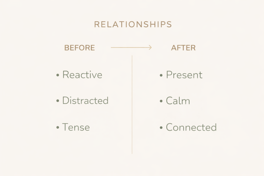 Through consistent practice, you begin to notice your thoughts, triggers, and internal dialogue.