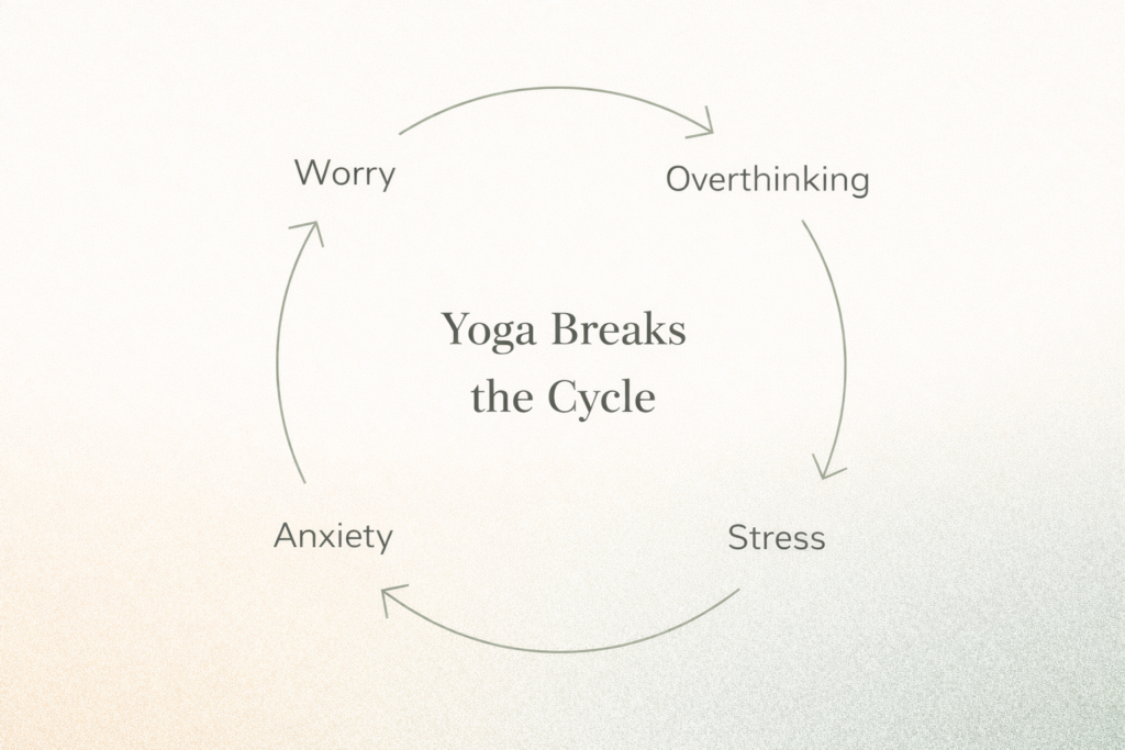 Yoga interrupts this cycle by shifting your focus to breath and awareness.